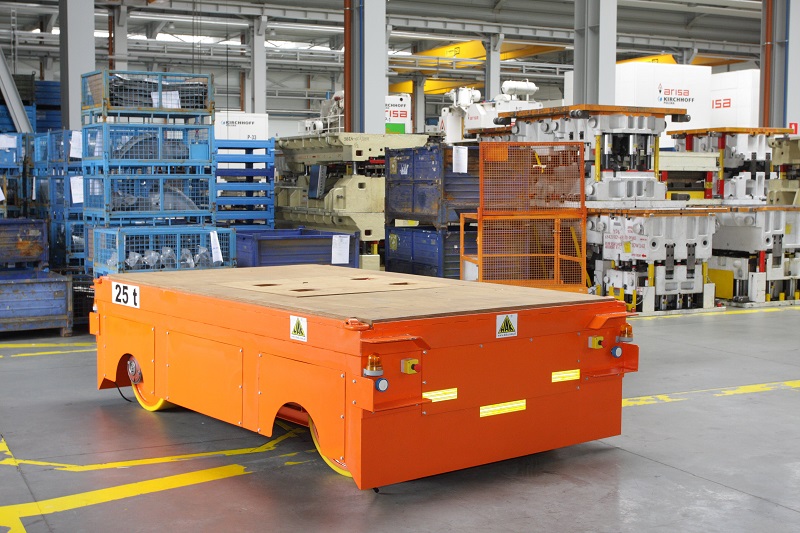 Samobieżna platforma transportowa została specjalnie zaprojektowana do efektywnego przemieszczania ciężkich lub wielkogabarytowych ładunków wewnątrz zakładu produkcyjnego. Jej główne zastosowania obejmują transport ładunków wielkogabarytowych oraz przemieszczanie ładunków pomiędzy różnymi stanowiskami obróbki, montażu, produkcji i magazynowania. Urządzenie jest wyposażone w zestawy kołowe z niebrudzącym bieżnikiem, co zapewnia stabilność i skuteczność transportu.