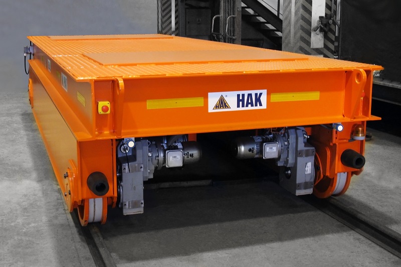Platforma transportowa szynowa, zasilana akumulatorowo, stanowi nowoczesne rozwiązanie, które zostało opracowane w celu efektywnego i przyjaznego dla środowiska przemieszczania materiałów i produktów wewnątrz zakładów produkcyjnych. Jej zastosowania obejmują transport ładunków w procesach technologicznych oraz przewożenie wałów i walców. Platforma jest wyposażona w sygnalizację świetlną i dźwiękową, która uruchamia się podczas ruchu urządzenia.