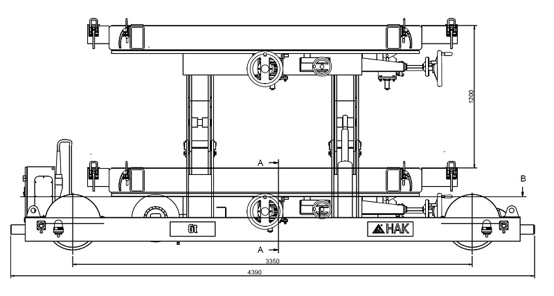 Platforma transportowa szynowa unosząca zaprojektowana do obsługi procesu transportu podzespołów montażowych.