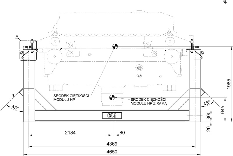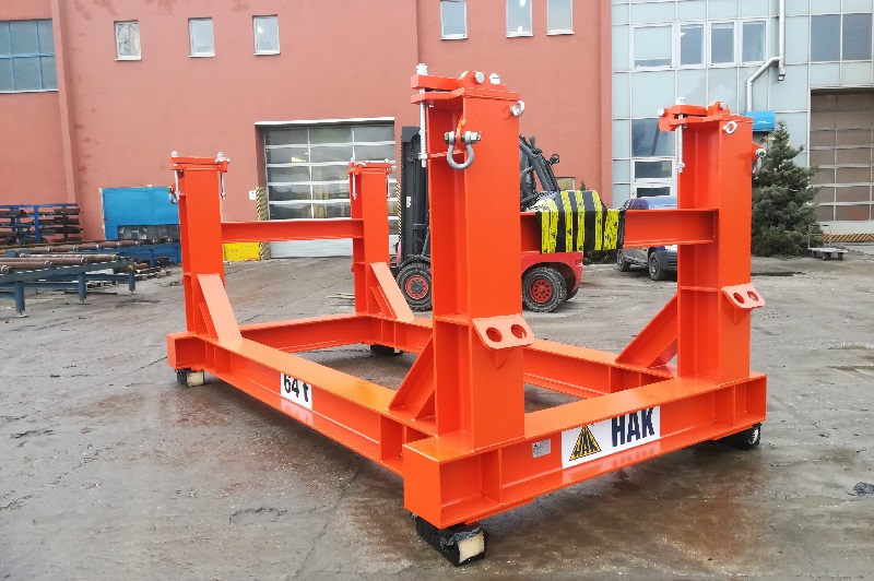 Konstrukcja: Projekt rozwiązania został dostosowany do gabarytów pojazdu transportowego oraz przewożonego ładunku. Ramę wyposażono w zaczepy do podniesienia z zastosowaniem suwnicy i zawiesi czterocięgnowych.
