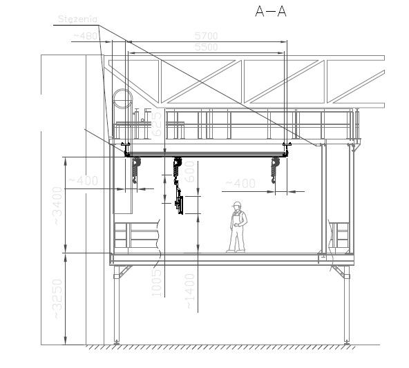 Zaprojektowanie, wykonanie, dostawa oraz montaż systemu torowisk, przeznaczonego do zainstalowania urządzeń transportu bliskiego do obsługi linii technologicznej. Na konstrukcji wsporczej zamontowano trzy suwnice podwieszane.