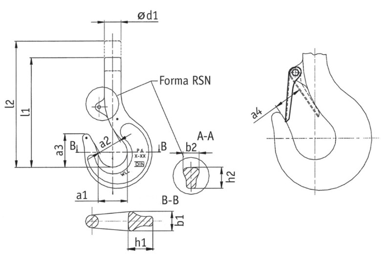 Haki jednorożne według normy DIN 15401 - odkuwki stalowe przeznaczone do zastosowania w zbloczkach linowych.