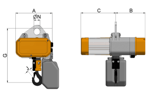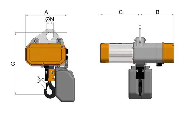 Wciągniki elektryczne łańcuchowe charakteryzują się kompaktową budową oraz dużymi możliwościami technicznymi. Mechanizmy wciągnika mieszczą się w zwartej obudowie, a całość wyposażona jest w wózek jezdny, który umożliwia przejazd wciągnika wzdłuż belki, na której jest zamontowany. Wciągnik elektryczny łańcuchowy standardowo wyposażony jest w pojemnik na łańcuch.