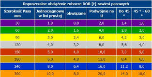 Rys. 6. Dopuszczalne obciążenia robocze DOR [t] zawiesi pasowych, wg [7]